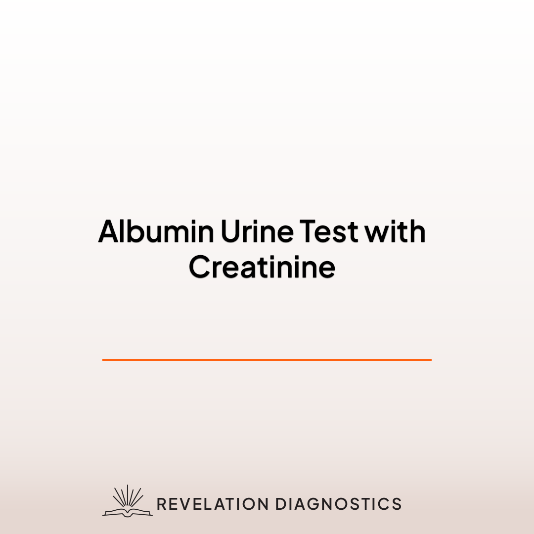 This test evaluates kidney function by measuring the levels of albumin and creatinine in a urine sample. Albumin is a protein that should normally be retained by healthy kidneys. When detected in urine, even in small amounts (microalbuminuria), it may indicate early kidney damage, particularly from diabetes or high blood pressure. The inclusion of creatinine provides context for urine concentration, improving result accuracy. Clinicians use this test to detect kidney disease before symptoms develop, monitor chronic conditions, and guide ongoing treatment. It offers essential insight into renal health and long-term kidney management.
