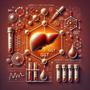 Gamma glutamyl transferase (GGT) – an enzyme found in the highest amounts in the liver. Injury to the liver results in release of the substance into the blood.